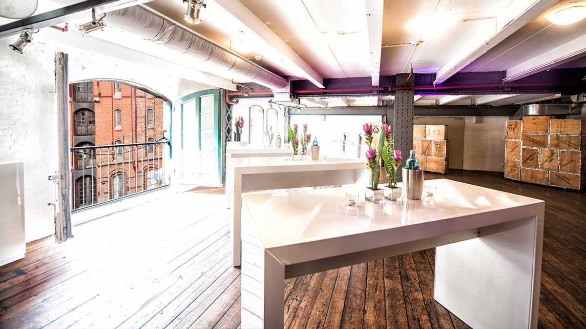 Helle Holzdielen, Deckenbalken aus Stahl und Sprossenfenster – der Historische Speicherboden begeistert einfach jeden sofort mit seiner Schönheit. Wer die Welt ein wenig pragmatischer sieht, dem wird auch die großzügige Fläche imponieren: 750 m² lassen sich hier in drei Einheiten unterteilen. Also darf es eine Tagung sein, die sich abends in ein Dinner oder ein abschließendes Get Together mit Entertainment verwandeln soll? In dieser Eventlocation darf man gerne über den Rand denken während man auf die Fleete blickt!